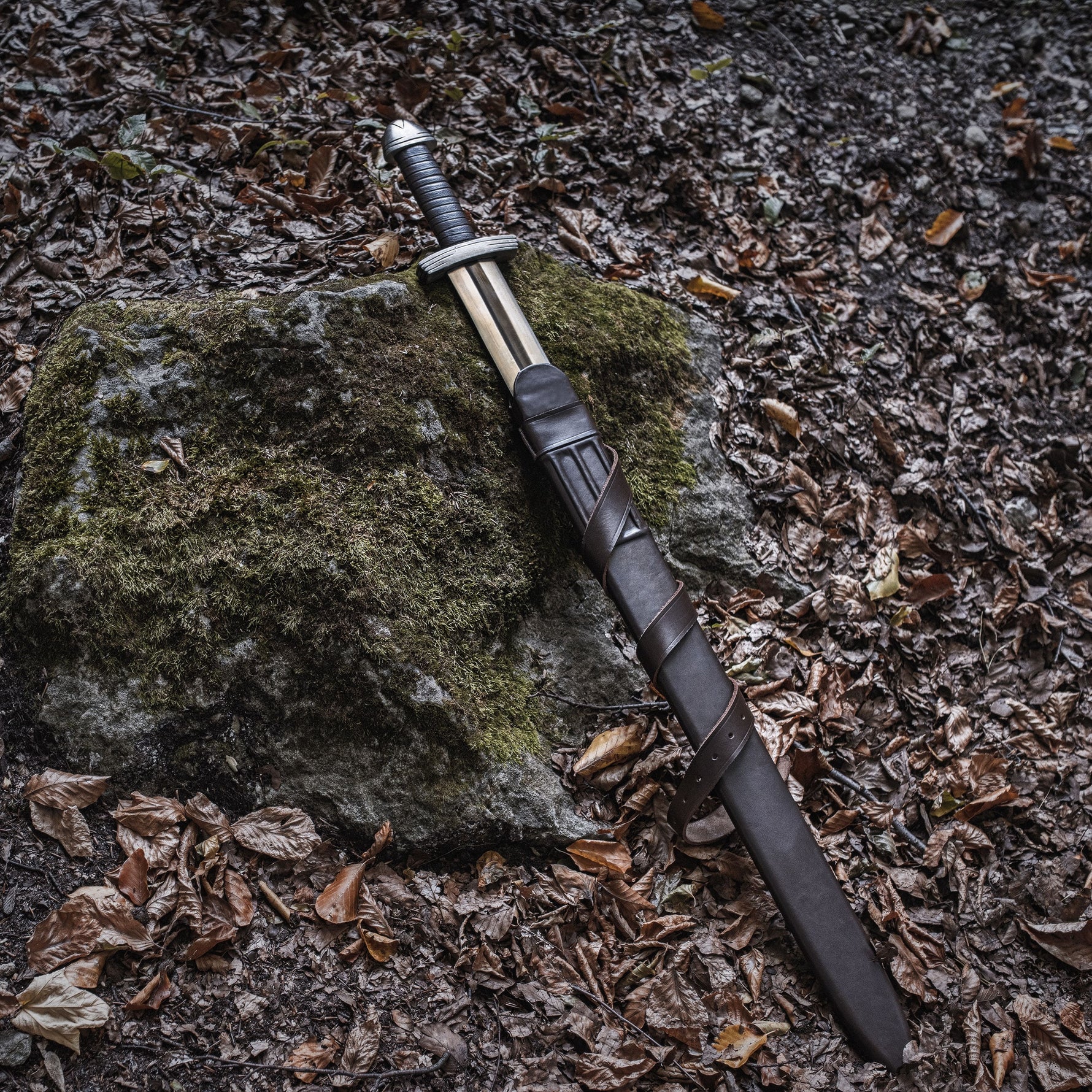 "Helbítr" Viking Sword with Leather Wrapped Wooden Scabbard and Leather Waist Belt