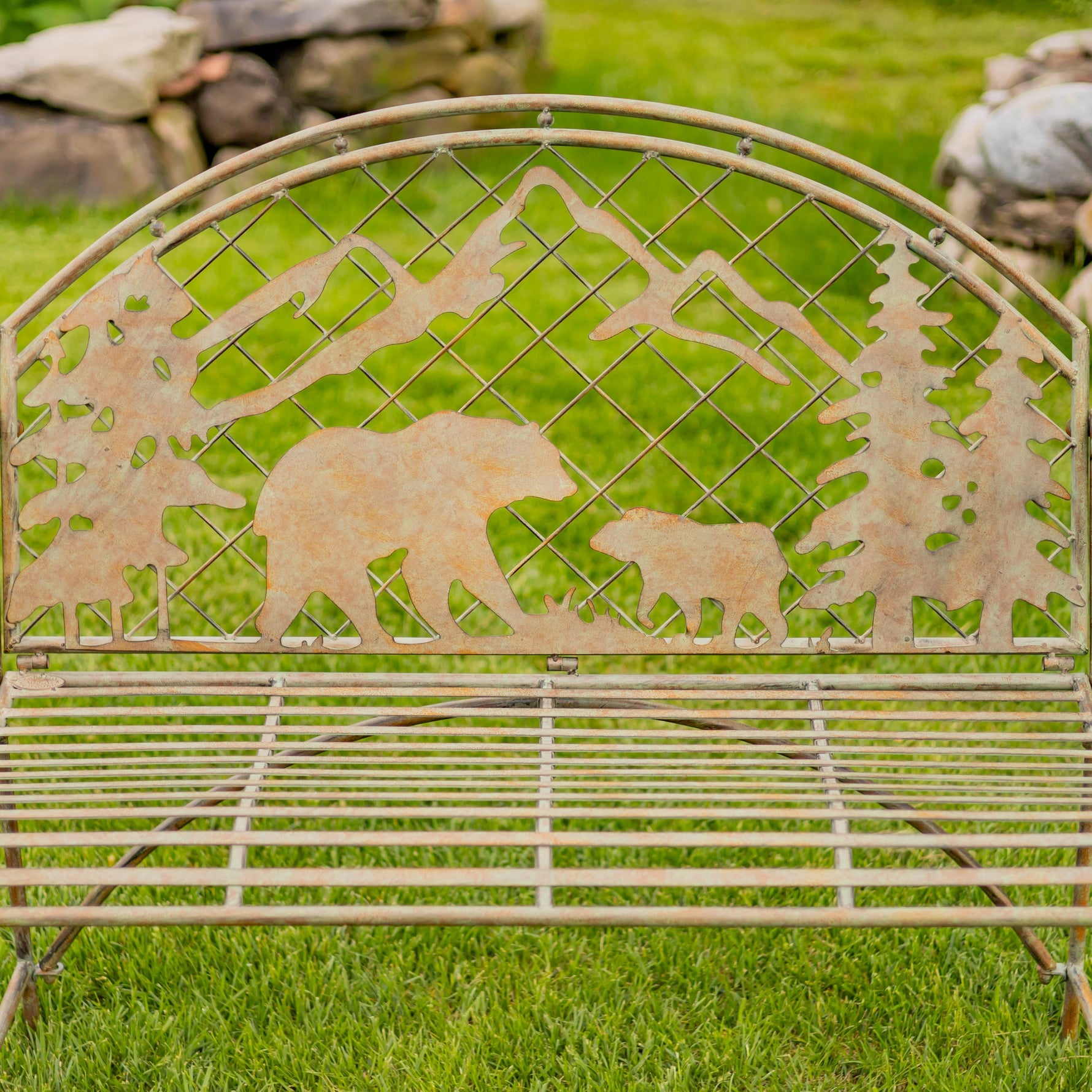 "Yellowstone" Round Top Iron Garden Bench with Grizzly Bear & Mountain Silhouette