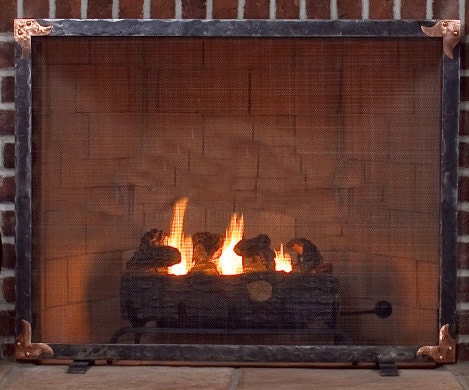 Hand Forged Fireplace Screen with Copper Corner Details. Buy now or shop the collection.