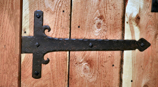 These oversized decorative straps are ideal for large doors, carriage doors, barn doors, gates, shutters, and architectural panels where you want the dramatic look of functional iron hinges without changing how the door opens.