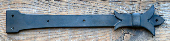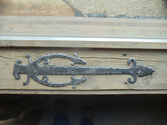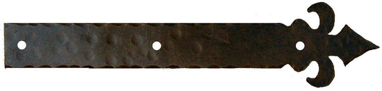 Our iron hinge straps come in sizes ranging from 32" to 58". Some straps with decorative elements may have wider strap widths. These faux hinges are available in each of our signature textures and finishes. Please reach out to us via office@oldwestiron.com to request custom sizes, finishes, and styles. If you're looking for larger sizes, please check out our standard faux hinge straps before placing a custom product request.