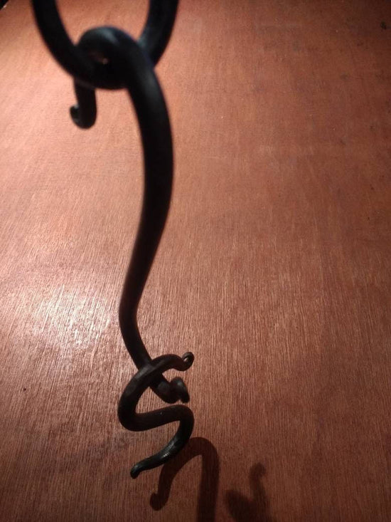 • Our Hand Forged S Hooks exemplify exceptional craftsmanship and practical design. Each hook is individually shaped by hand from recycled steel, reflecting the timeless artistry of traditional blacksmithing. Made from durable, high-quality metal, these hooks are virtually unbreakable and built to last. Available in custom sizes ranging from 4" to 10", they offer versatile use—from hanging kitchenware and lanterns to organizing coats and bags. Despite their elegant, lightweight appearance, these hooks support over 30 pounds. Choosing these hooks also supports sustainability through the use of recycled materials. Each piece is made to order with a 1 to 2-week production time, and custom requests are welcome to ensure a perfect fit for your needs. Finish options include a traditional beeswax coating for indoor or sheltered outdoor use, or a heavy-duty polyurethane finish for enhanced rust resistance in harsher environments. Over time, finishes may wear, but rust can be removed with steel wool or a wire brush, followed by paste wax to renew protection. Please note that all sales are final due to the custom nature of these handcrafted items. Enhance