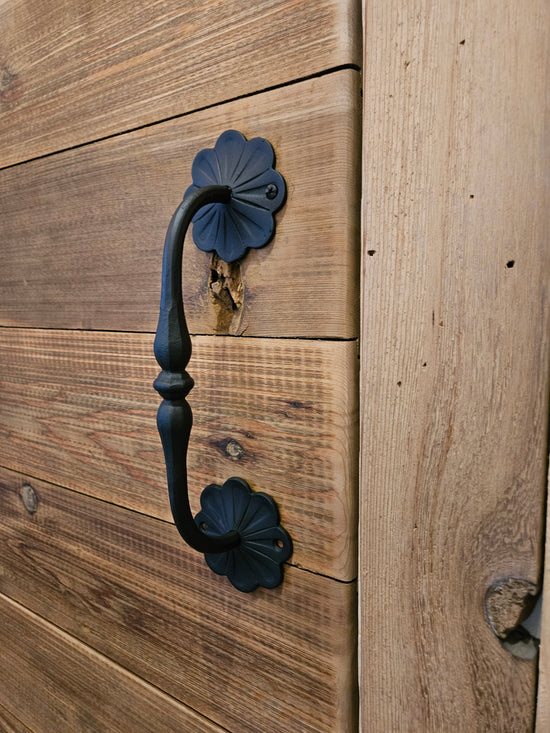 Old West Iron door pulls are crafted from thicker steel with hand-forged or hand-textured details. Unlike lightweight imports, our pulls offer substantial weight, lasting durability, and authentic Old World craftsmanship.