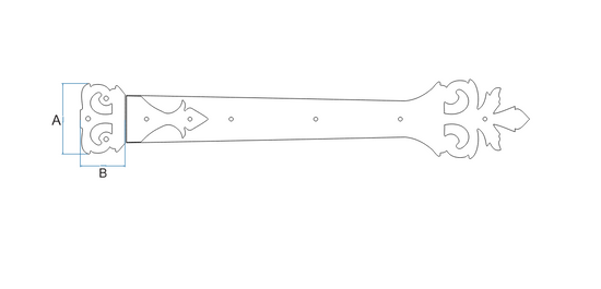 French Country Revival iron hinge strap is an eclectic design that has a simple, graceful flow. This design is compliments the French Country, Moroccan, Cottage, Art Nueveau, Indian, and Victorian style.