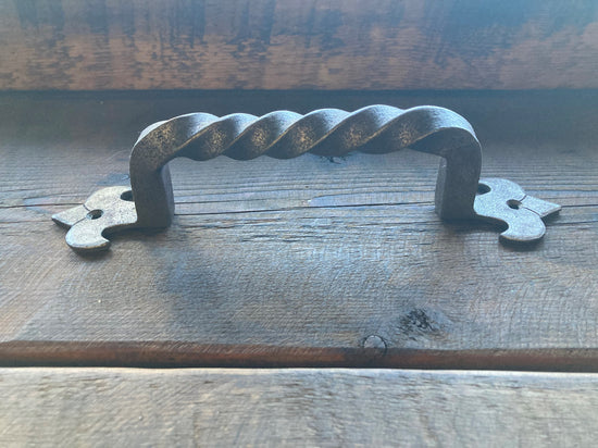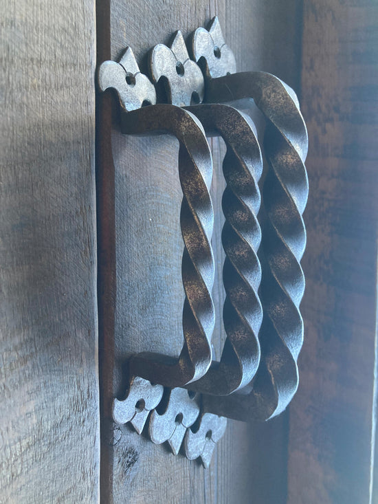 Egyptian Fleur de Lis iron door pull is compatible with French, Spanish, Roman, Rococo, Romanesque, Neo-Classical Renaissance, Medieval, French Creole/New Orleans, Queen Anne, and Victorian styles.