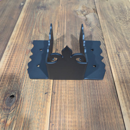 This hand-forged decorative beam bracket features a timeless Fleur-de-Lis motif, perfect for adding architectural beauty to exposed ceiling beams, timber frames, or rustic interiors. Built for both form and function, each piece is individually crafted from durable iron to support structural loads while elevating your space with old-world charm.