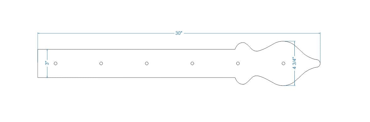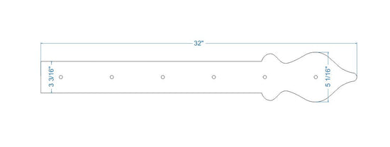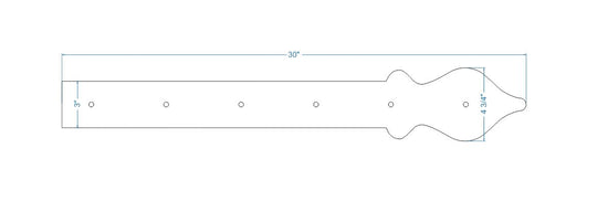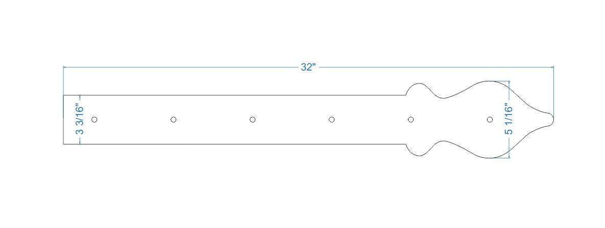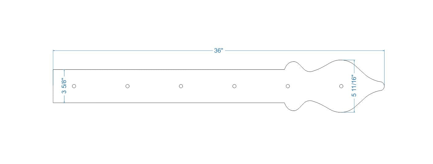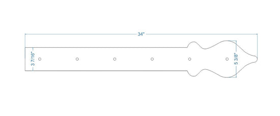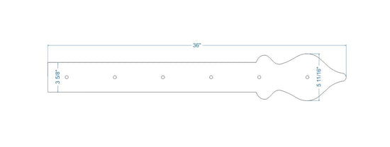 Nuestra correa de bisagra de hierro Cottage es un extremo suave en forma de lanza que se puede representar como una cerca de estacas inglesa abstracta, que mejoraría los estilos tradicionales como Colonial, Tudor, Cottage, indio, persa, marroquí, inglés, país, francés Campestre y Rústico. También demuestra las tendencias Art Nouveau con su extremo abstracto en forma de lanza, que complementa los estilos moderno, retro, art déco y arts & crafts. Los clavos (cabezas de clavos decorativas) se venden por separado.