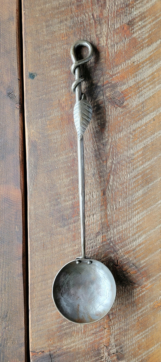Cuillère à œuf forgée à la main Manche en feuille de forgeron