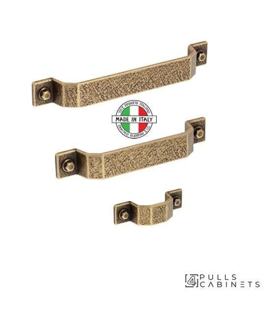 Introduce a touch of Italian allure to your interior design. Product Specifications and Sizes: Material: Zinc Alloy Finish: Antique Brass with Vintage Patina ✔ Style: Farmhouse, Rustic, Retro, Traditional Finish Match: This collection offers the same "Antique Brass with Vintage Patina" finish as our other hardware lines, allowing for mix and match options while maintaining a uniform look. A -Handle 6.30'' Length: 7.08" (180 mm) Width: 0.94'' (24 mm) Height: 0.90'' (23 mm) Holes Space (center to center): 6.30'' (160 mm) B -Handle 5.0'' Length: 5.82" (148 mm) Width: 0.94'' (24 mm) Height: 0.90'' (23 mm) Holes Space (center to center): 5.0'' (128 mm) C -Handle 2.52