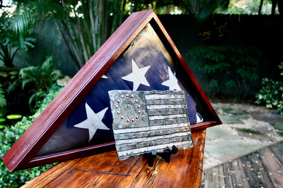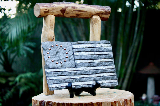 Crafted in freedom... The original flag of America, also known as the Betsy Ross flag, was created by skilled artisan and Philadelphia resident Betsy Ross, using a blueprint provided by none other than George Washington. A symbol of the thirteen founding states, this flag represented the young nation until 1795. I proudly constructed this flag with a sense of nostalgia for the past, a recognition of the present, and an optimistic outlook for the future.