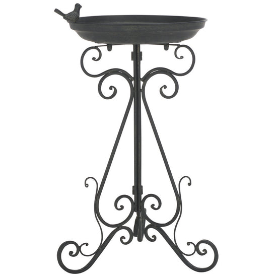 Enchanting and elegant, this sweet bird bath transforms any outdoor area into a magical secret garden. Adorned with graceful scrolls, its fine iron craftsmanship is illuminated with a variety of finish hues. Its adorable bird ornament welcomes winged friends.