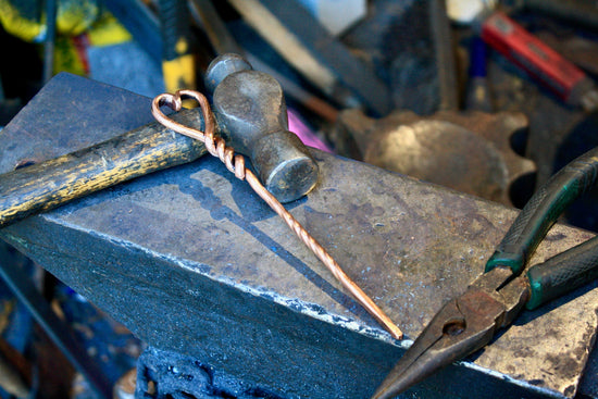 This expertly handcrafted heart-shaped copper hair fork adds a touch of elegance to any hairstyle. Made in the traditional style with meticulous care and attention, each unique hair stick is created using age-old techniques, including working the metal over an anvil and hand polishing. As a result, no two pieces are exactly alike, making this more than just a functional accessory - it's a work of art. Whether you have thick or thin hair, this stick is sure to elevate your look with its stylish design, instilling you with a sense of confidence and individuality.