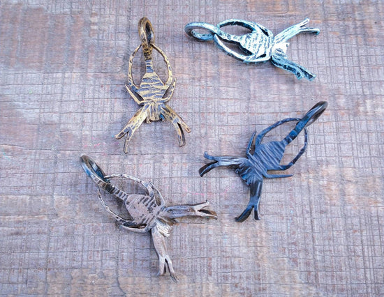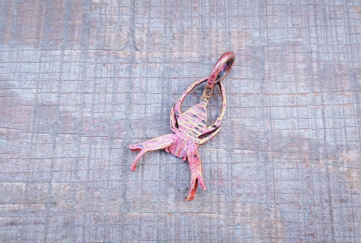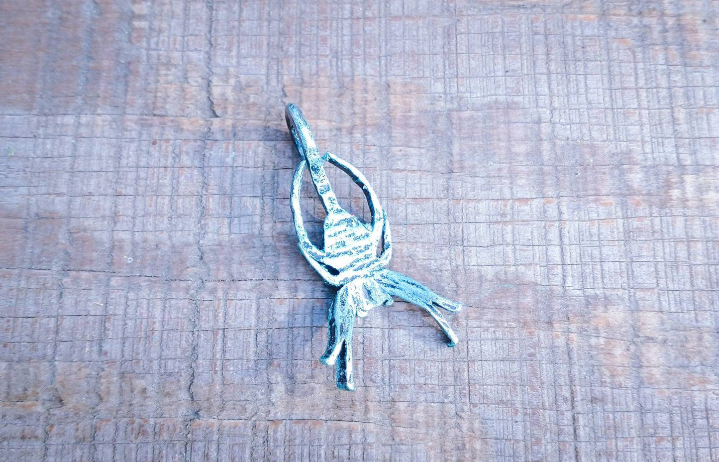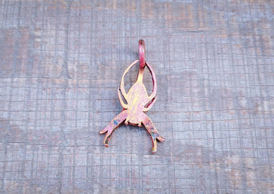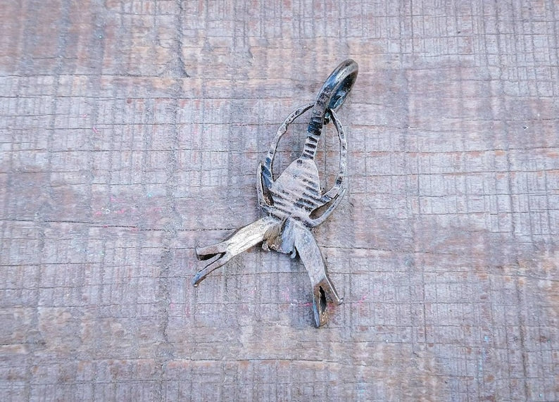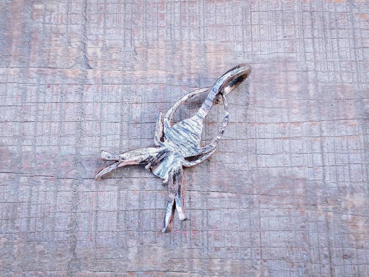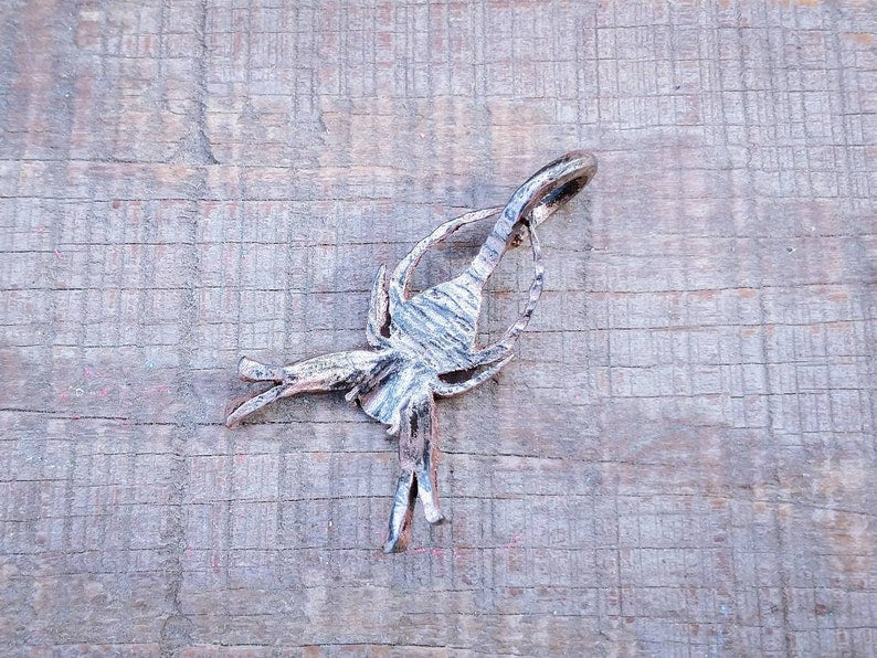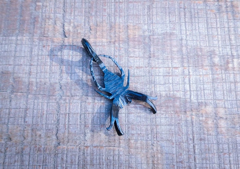 This arachnid-inspired, hand forged steel pendant is both sturdy and fashionable, featuring a traditional rustic design and available in various finishes to complement any ensemble. At 1 1/2 inches tall by 1 inch wide and weighing 21 grams, it makes for a versatile and stylish unisex accessory suitable for any occasion. Crafted with a blend of traditional and modern techniques in a one-man blacksmith shop, each piece is unique and may vary slightly in appearance. While the low carbon steel used in production has the potential to rust, I offer a choice of finishes to protect against wear and corrosion. For optimal protection, a layer of beeswax is applied to the hot metal for a water-resistant matte finish, suitable for indoor or protected outdoor use. For more demanding environments, a heavy duty outdoor polyurethane coating is available for added rust resistance. Remember that all finishes will eventually wear off, but can be easily restored with steel wool and wax. If you have any questions or concerns.