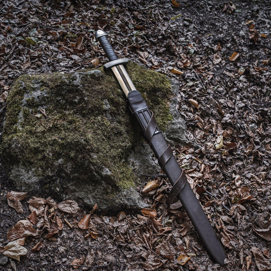 "Helbítr" Viking Sword with Leather Wrapped Wooden Scabbard and Leather Waist Belt