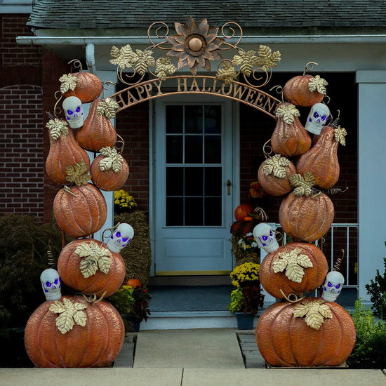 "Happy Halloween" Arch with Pumpkins and Skulls