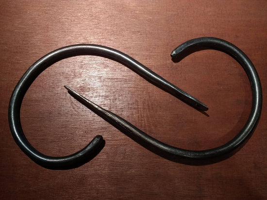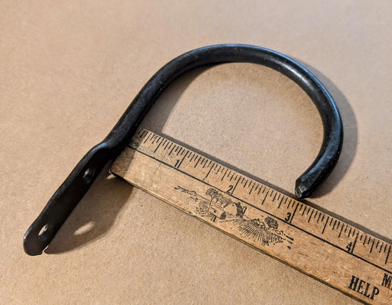 These simple curtain holdbacks are hand forged from sturdy steel, featuring a clean and elegant design that suits nearly any decor. Each holdback measures about 5" in length with a 3" inside diameter and a smooth round end, mounted securely with a thumbprint base. Made to order, production typically takes 1 to 2 weeks, though high demand may extend this to 2 to 4 weeks unless expedited arrangements are made. Crafted from low carbon steel, these holdbacks may develop rust over time but can be protected with a beeswax matte finish for indoor or sheltered use, or a durable polyurethane coating for outdoor exposure. Finishes can be refreshed as needed. Please reach out with any customization requests or questions about finishes.