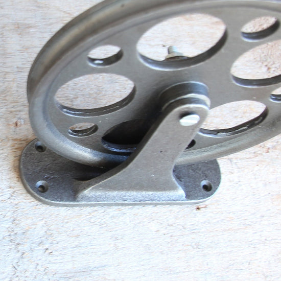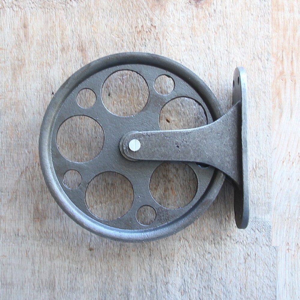 Cast iron industrial wheel for a table or to hanging lamp from the ceiling.