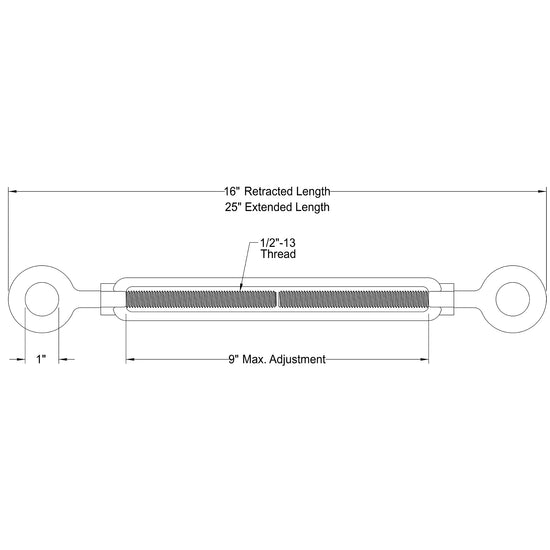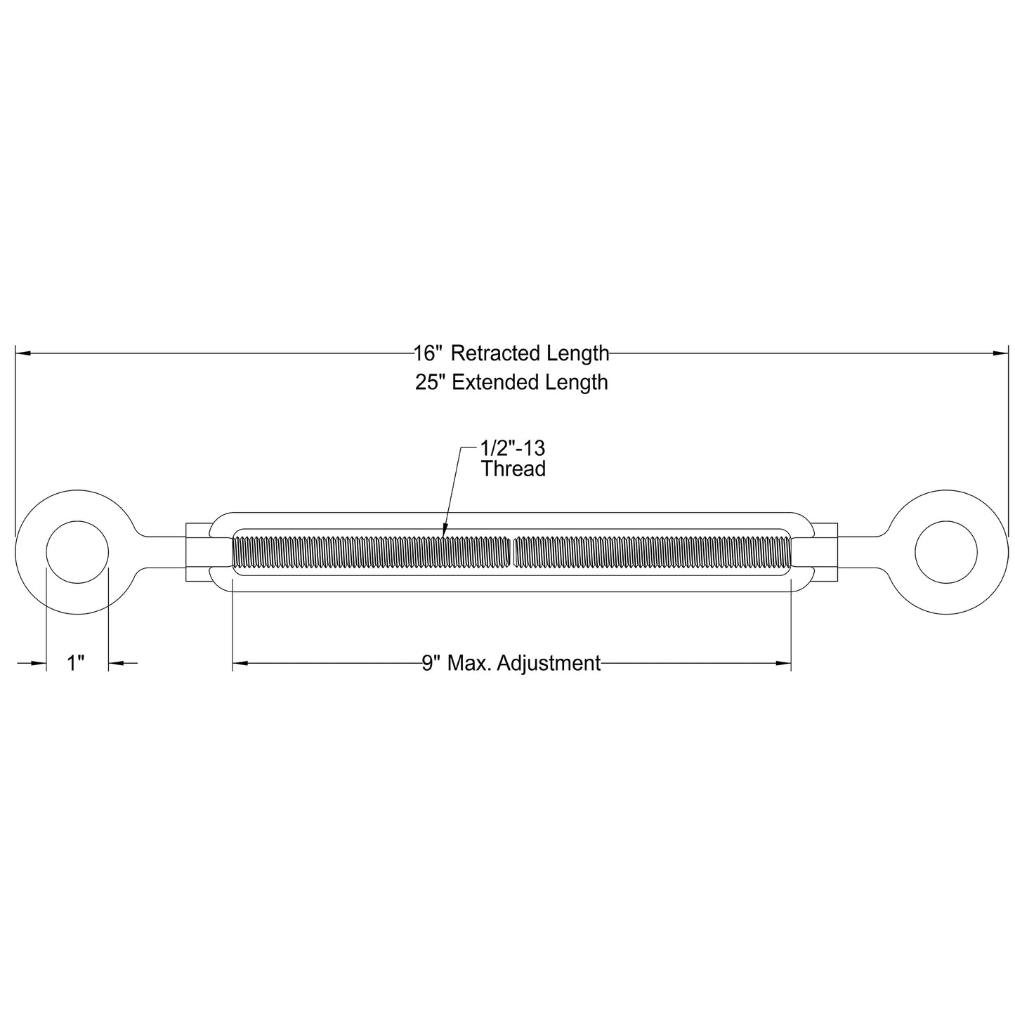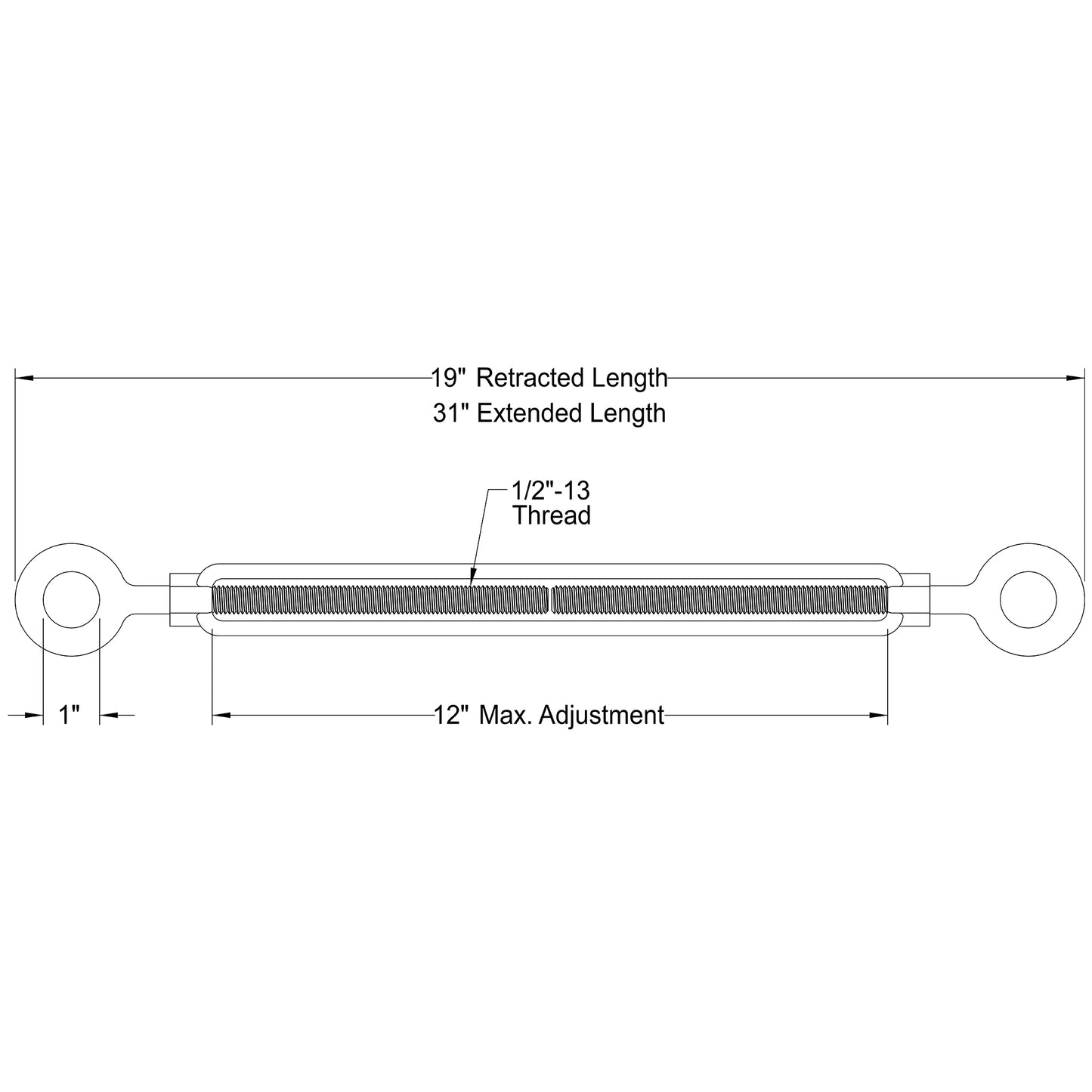 So when you’re considering how best to renovate and improve your home's design and value, take advantage of what the 1/2" diameter eye to eye turnbuckle assembly has to offer — they’ll provide strength plus lifelong beauty that is sure to transform your space into something truly spectacular!