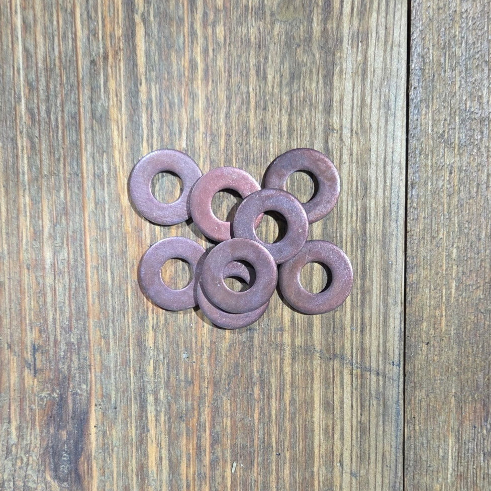 This product has a 3/8" ID and 1" OD, which makes it suitable for use with 3/8" bolts. It is important to note that while it has a copper color, it is not composed of copper. The black oxide treatment process caused the change in color. Please note that these items are non-returnable, but they may still have practical applications for you.