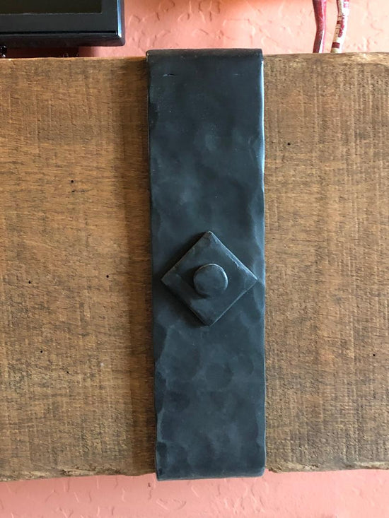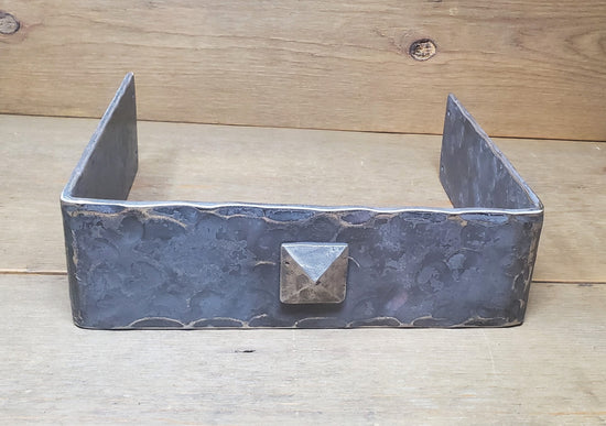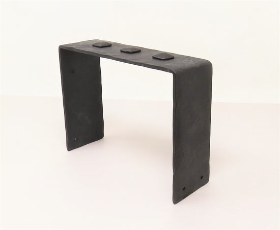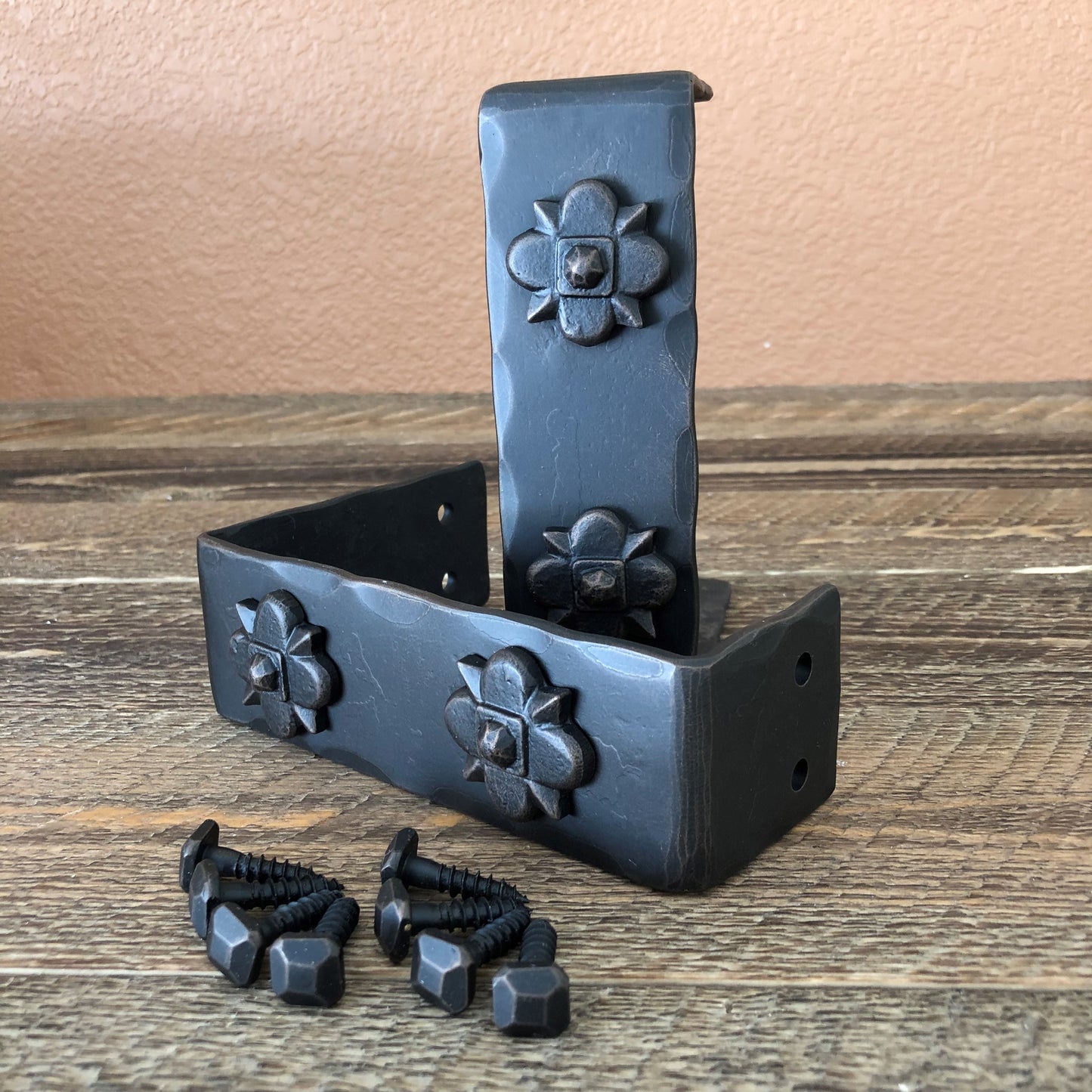 3 sided U-Strap with decorative rivets for mantles and more. These fireplace mantel straps can also be used for any decorative iron u-strap application. Smooth textured iron mantle straps can blend well with industrial, modern contemporary, spanish and even rustic design styles depending on the rivets selected. Decorative iron mantle straps selected in hammered edges can lean toward a rustic and craftsman style. Our favorite texture on these fireplace mantle straps is distressed, this texture mimics an old rusted peice of metal that has been repurposed and refinished. For an old world ornate look choose the all hammered texture on the iron fireplace mantel straps. The rivets or decorative nail heads chosen fro the straps will greatly change the look. Image shown with Fastener Option: HCN-02 Rivets, in hammered edges texture, wrought iron patina finish. If you are looking for a beam strap in this same design please follow this link below