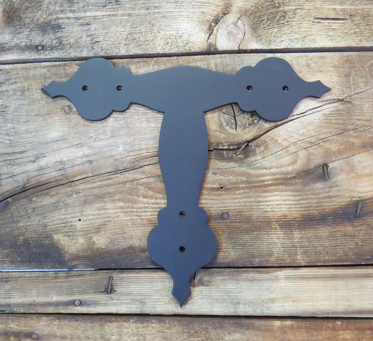 Handcrafted in Idaho by skilled blacksmiths, the French Country Revival Iron T Face Plate is a customizable piece with 30 unique hand painted and hammered finish options. Its authentic, old-world charm will elevate any space. Matching fasteners are also available.