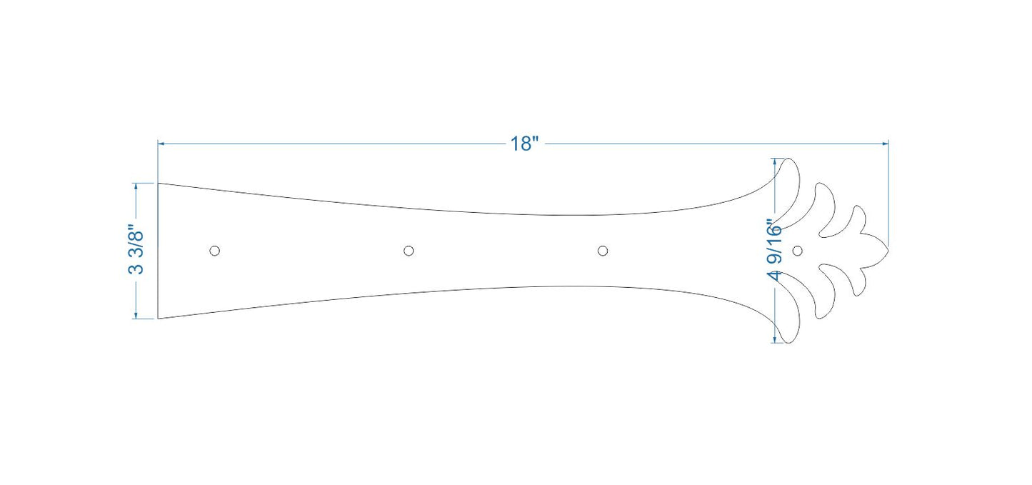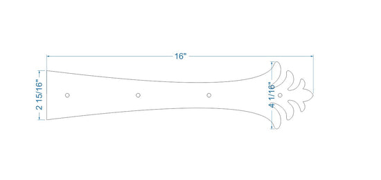 Greek Corinthian iron hinge strap is from the Greek Corinthian period and evolves into the Roman style. This slender and sleek leaf-like design accentuates a Mediterranean and Coastal/ Tropical style. This design is also compatible with Art Nueveau, Retro, Eclectic, Moroccan, and Asian.
