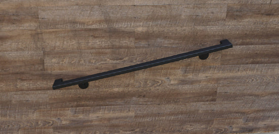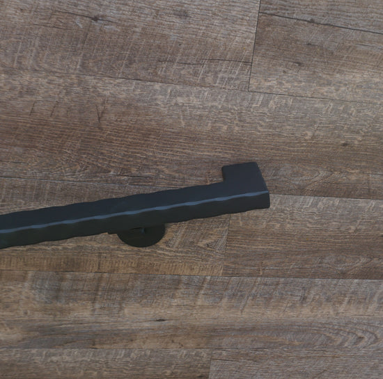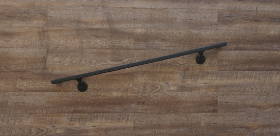This handrail is constructed from steel, metal, and iron, and is available in a variety of lengths. You can choose your desired length from the drop-down menu, or leave a note at purchase for a custom size. If your requested length is 7 ft 6 in or longer, the handrail will be shipped in two pieces, but can be assembled into one upon request. It includes the handrail itself, brackets for wall attachment, self-drilling screws for bracket attachment, and lag screws for wall attachment. The number of brackets included depends on the length of the handrail, ranging from two to five brackets. The finish is a flat black, but custom finishes are available upon request. Free shipping applies only to the continental USA, and this product is proudly made in the USA.