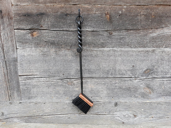 Carefully constructed from forged iron, this handcrafted fireplace brush provides a brushed and oiled surface for enduring defense against corrosion. With a length of 560mm and weight of 700g, this multi-purpose tool includes a practical hook for enhanced usefulness. Kindly note that all purchases are final.