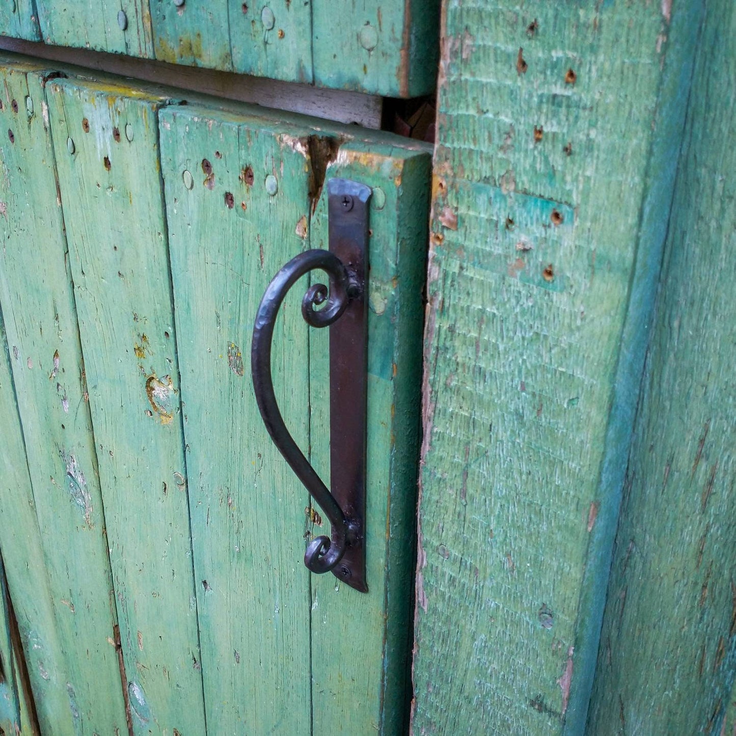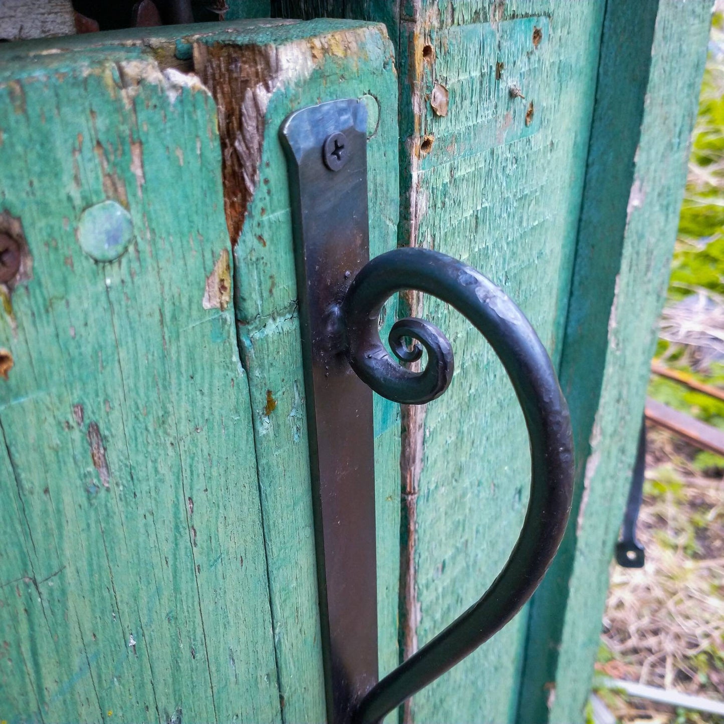 Hand forged scrolled barn door pull