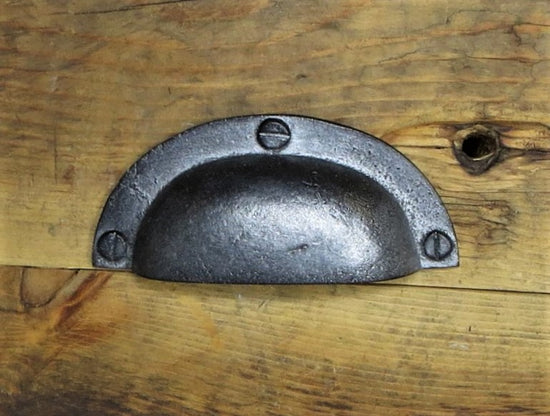 This simple drawer pull works well with farm house and industrial styles. 4" wide 2" inside 2" tall 5/8" standoff 2 holes #8-#10 machine screw.