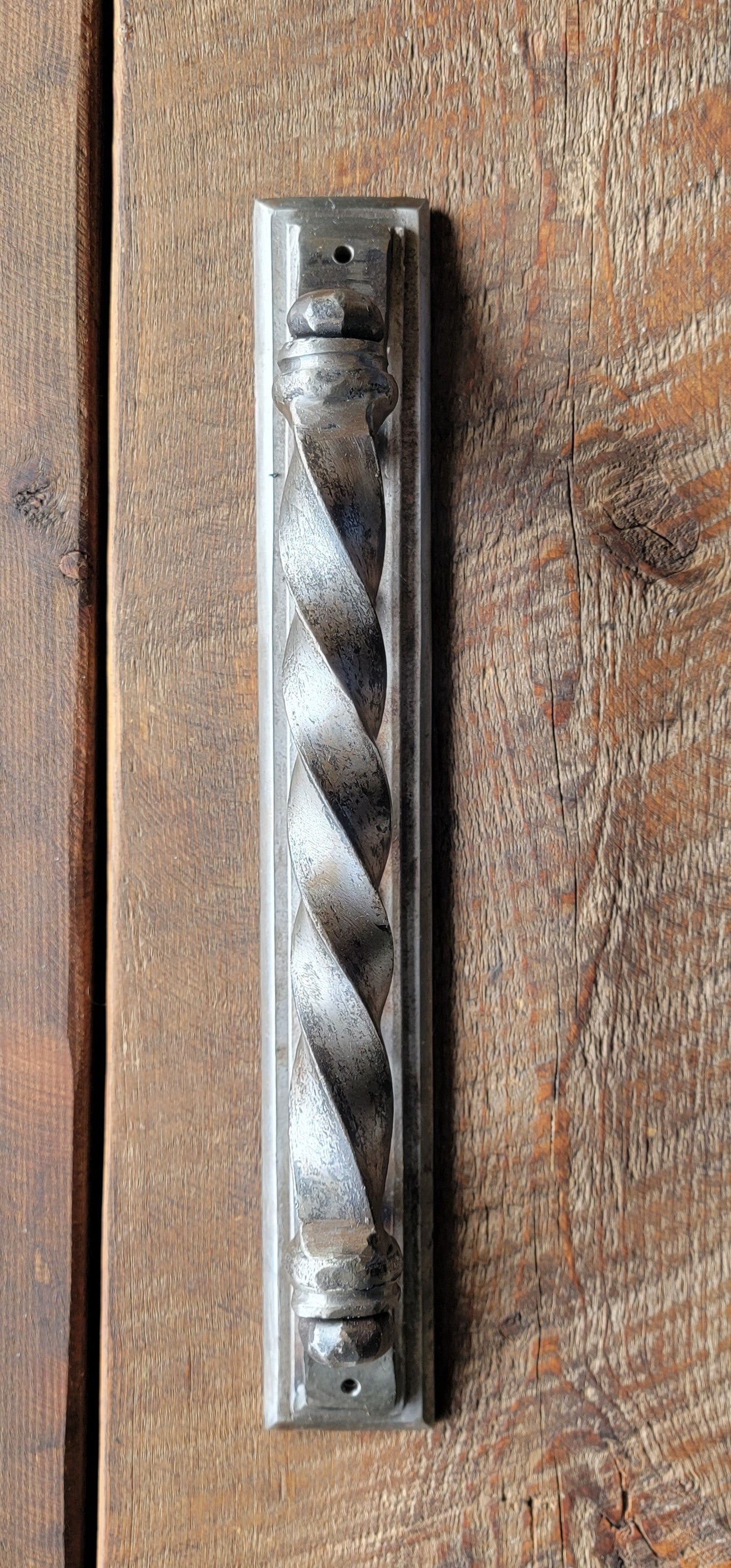 The Moorish Iron Door Pull comes in 3 different sizes: 12 inches, 14 inches, and 16 inches. Its unique design features a riveted handle and layered back plate, and is suitable for a variety of uses such as appliances, interior and exterior doors, entryways, and gates. While handcrafted with intricate details, this door pull has a smooth texture and is not offered in a hammered finish. The backplate is 2 inches wide and
