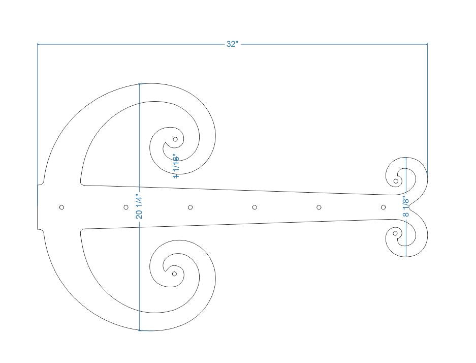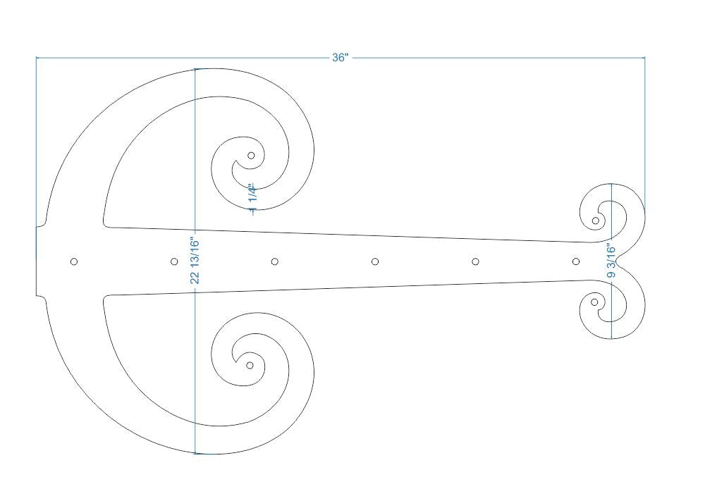 The Middle Age Europe iron hinge strap is a traditional Middle Age European design featuring unique scrolled end. This design was commonly found on castle doors from many different regions. This style is well suited with Mediterranean, Old English, French, Spanish, Celtic, Art Nueveau, and other Old World styles.