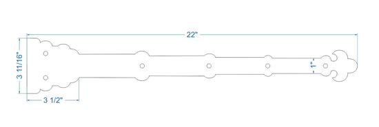 Moorish Revival iron hinge strap is an exotic revival style that is characterizedby elements such as muqarnas, horseshoe arches, cinquefoils and trefoils. This style was adopted by architects of Europe and America in the wake of the Romanticist fascination with all things oriental. It reached the height of its popularity after the mid-19th century, drawn from historical sources beyond the familiar classical and Gothic styles. This design compliments Persian,Spanish, Indian, Moroccan, Medieval and Mediterranean design styles.