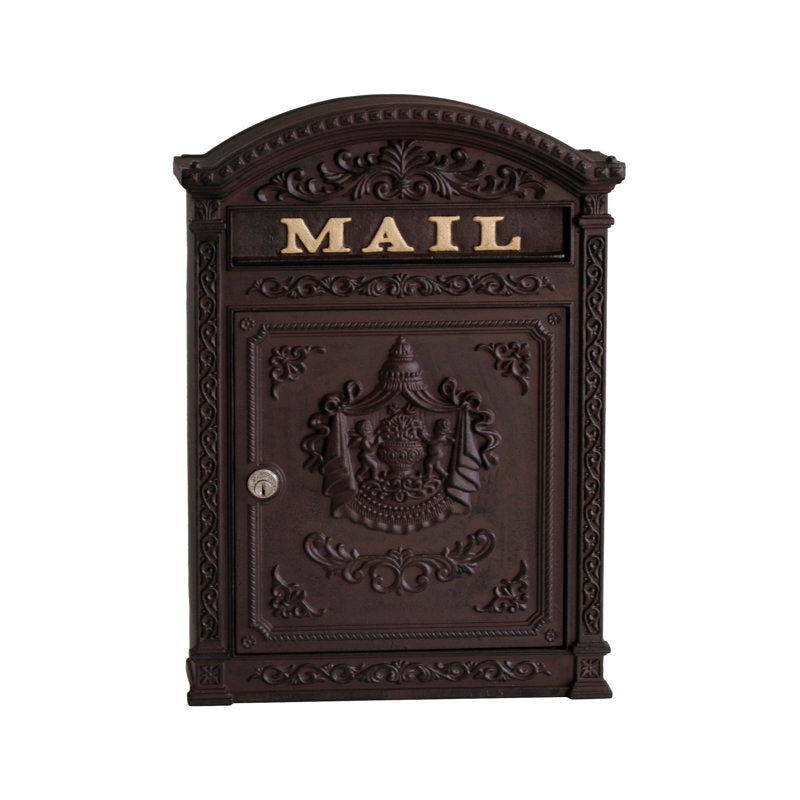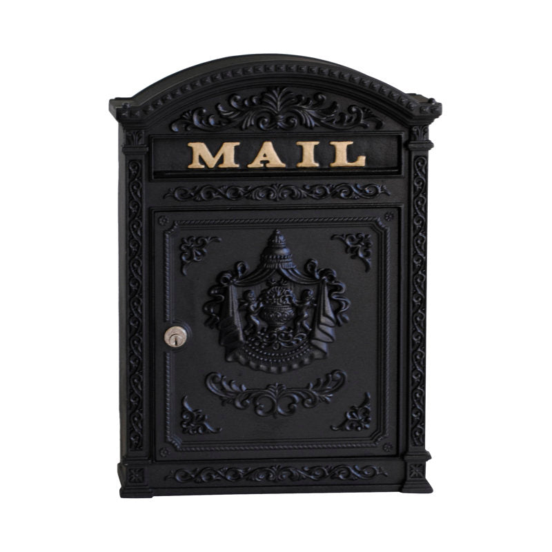 This elegant Victorian-inspired aluminum mailbox showcases classic design elements that evoke timeless sophistication. Perfect for traditional environments, it boasts sharp, prominent die-cast accents, a spacious locking door, and a spring-loaded top lid for secure mail insertion.